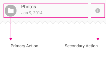 因為動作並非清單磁磚中的可識別元素,所以輔助動作應該放置於磁磚的右側。