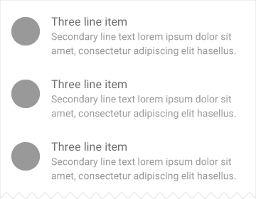 清單中的每個磁磚最多可放三行文字,同一個清單中,各個磁磚的字數可以不等。若要顯示三行文字以上,應使用「卡片」。