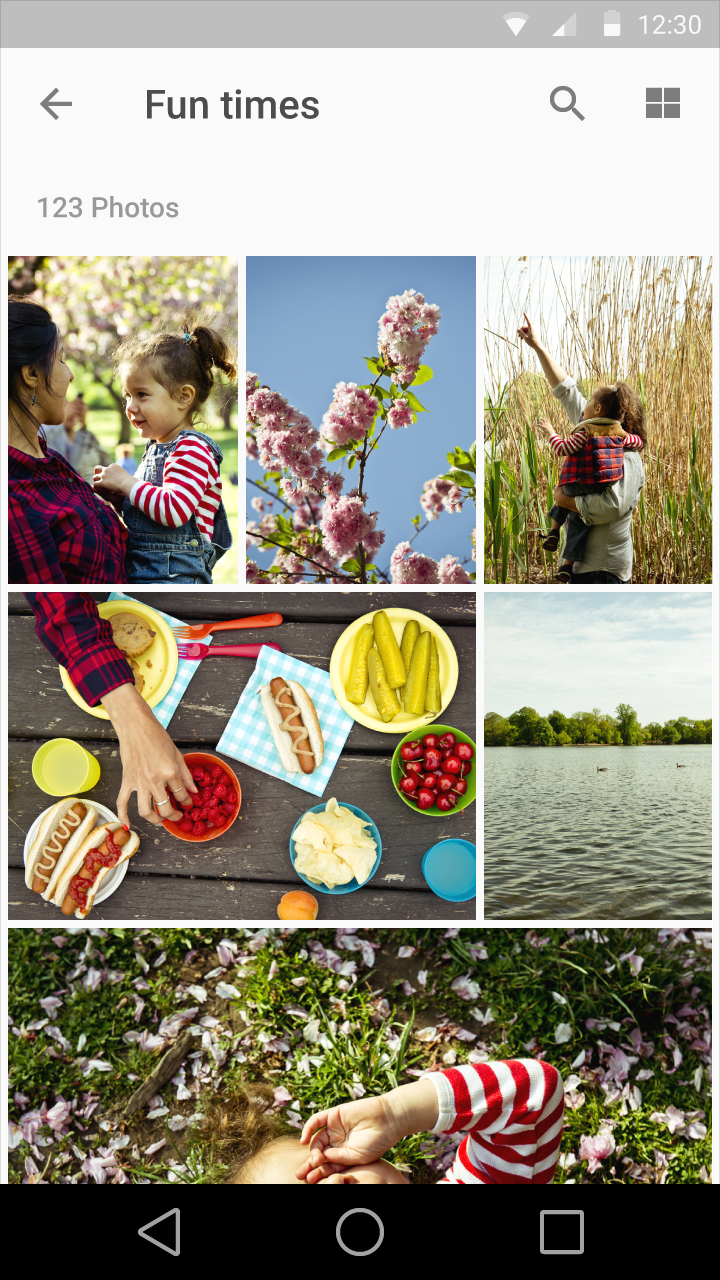 在一個畫廊內容中,引入各種尺寸的略縮圖來傳達內容層次結構。